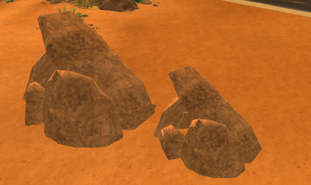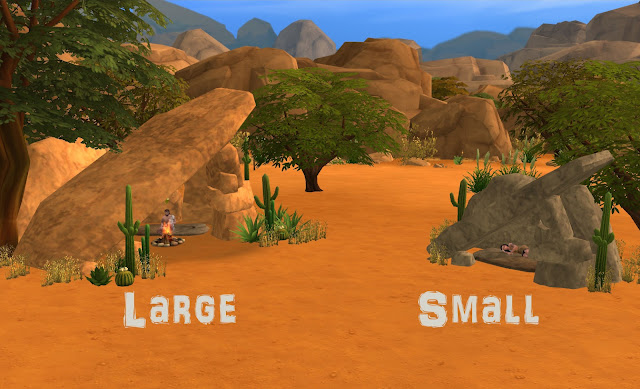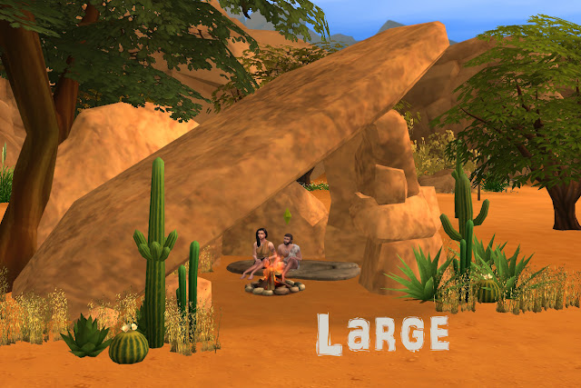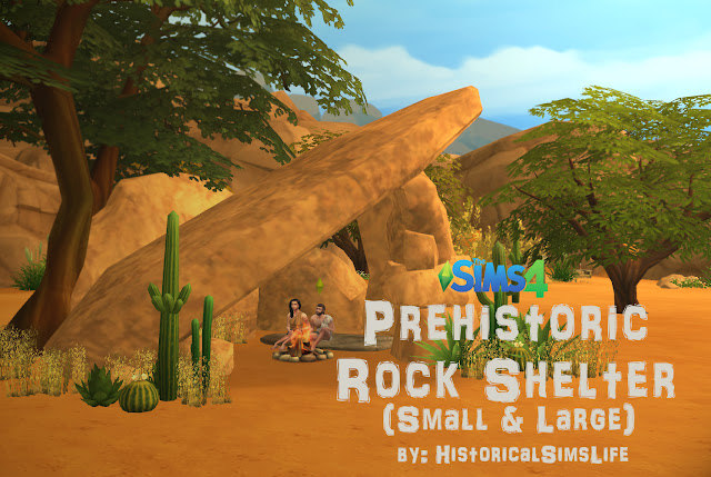 Since the cc caves that are available to History Challenge work as tents we aren’t able to see sims be and interact with each other inside them and I think it’s a shame since we loose some good story telling potential because caves are pretty essential in the prehistoric era. That’s why I wanted to have a cave with a shelter type of structure that sims could get inside in but we can still see them. Then I saw these rock formations converted to Sims 2 from Sims 3 by HafiseAzale and I think they were perfect. So all credit to HA!